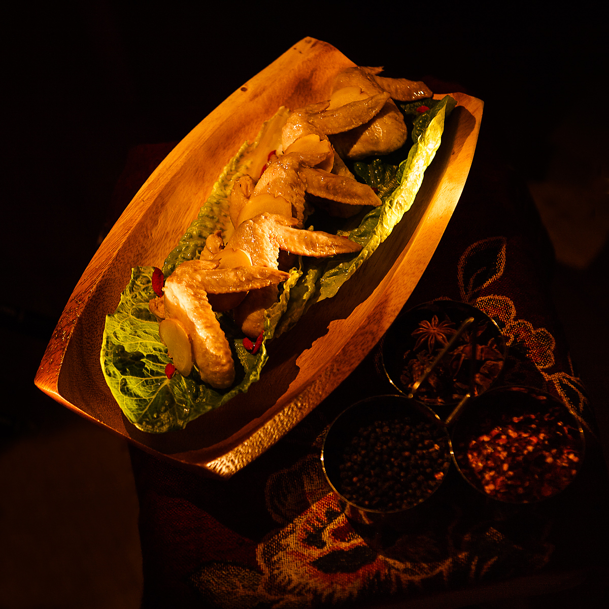 - Air dry the wings for a few minutes, place into a tub, Wait till the broth cools down, ladle the broth to submerge all the wings, store in fridge and best to chill overnight before serving.