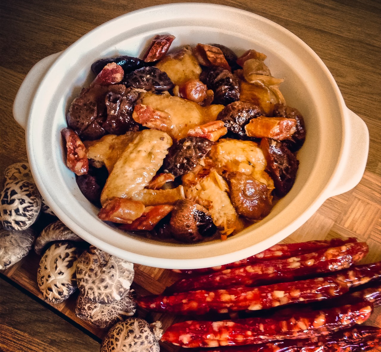 Clay Pot Chicken with Chinese mushroom and Sausages 冬 菇 滑 雞 煲